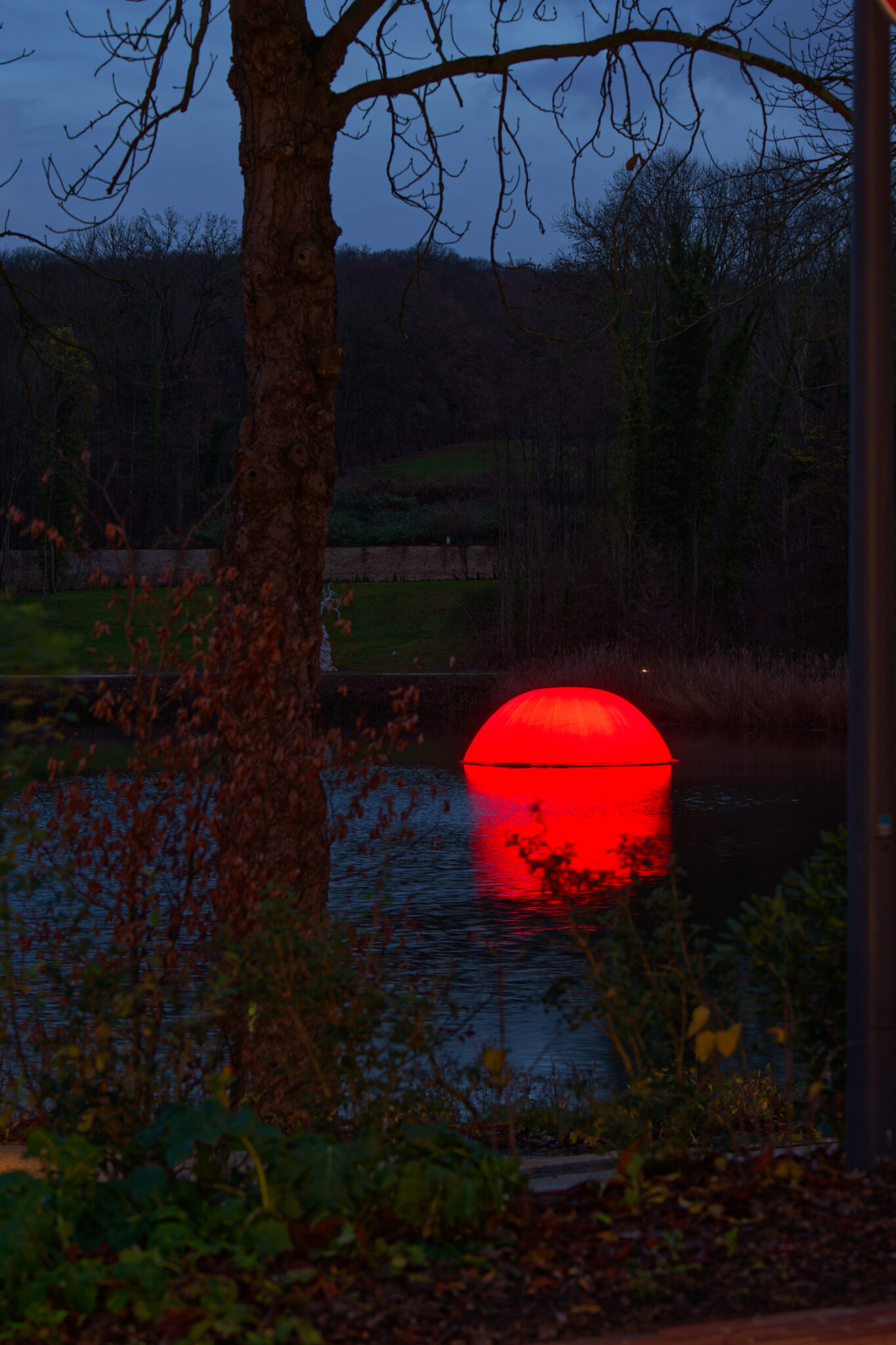 Avec Sunset in the Woods, Ludmila Rodrigues et Mike Rijnierse recréent de manière artificielle ce spectacle naturel pour dépasser ces contradictions. Le coucher de soleil, par nature fugace et dont l’observation est limitée à un seul point de vue, acquiert une nouvelle perspective grâce à cette sculpture flottante, à la surface du bassin de Chalais, avec la forêt de Meudon en arrière-plan. Le duo d’artistes suspend le temps et distord l’espace. Éclairée toute la nuit et visible à 360 degrés, Sunset in the Woods renouvèle l’expérience du soleil couchant. Cette œuvre invite à une déambulation lente et contemplative, offrant au public l’opportunité de graviter autour du soleil alors que la nuit est déjà tombée.