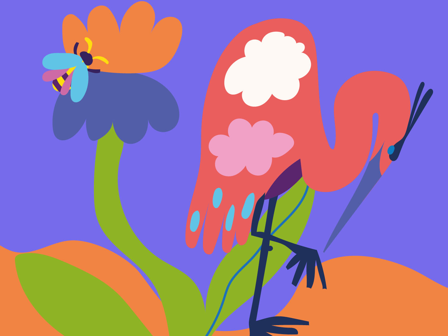 Le lien entre l’extérieur et le grand atelier est évoqué subtilement : les lianes colorées rappellent les branches qui ondulent dans les arbres, les créatures imaginaires évoquent la faune cachée dans les roselières, les jeux d’ombres résonnent avec la lumière du matin qui traverse les feuillages…